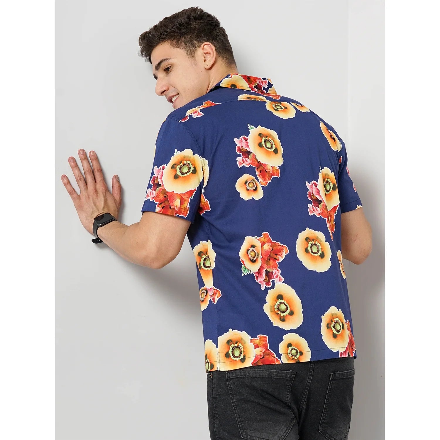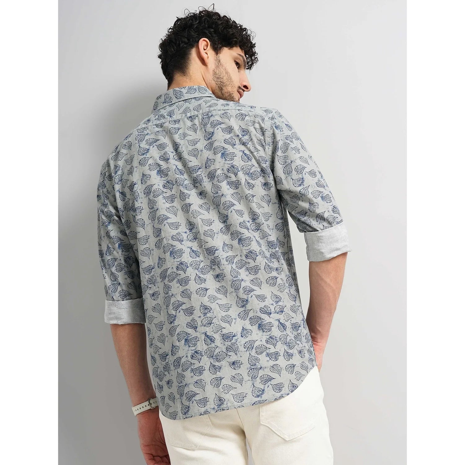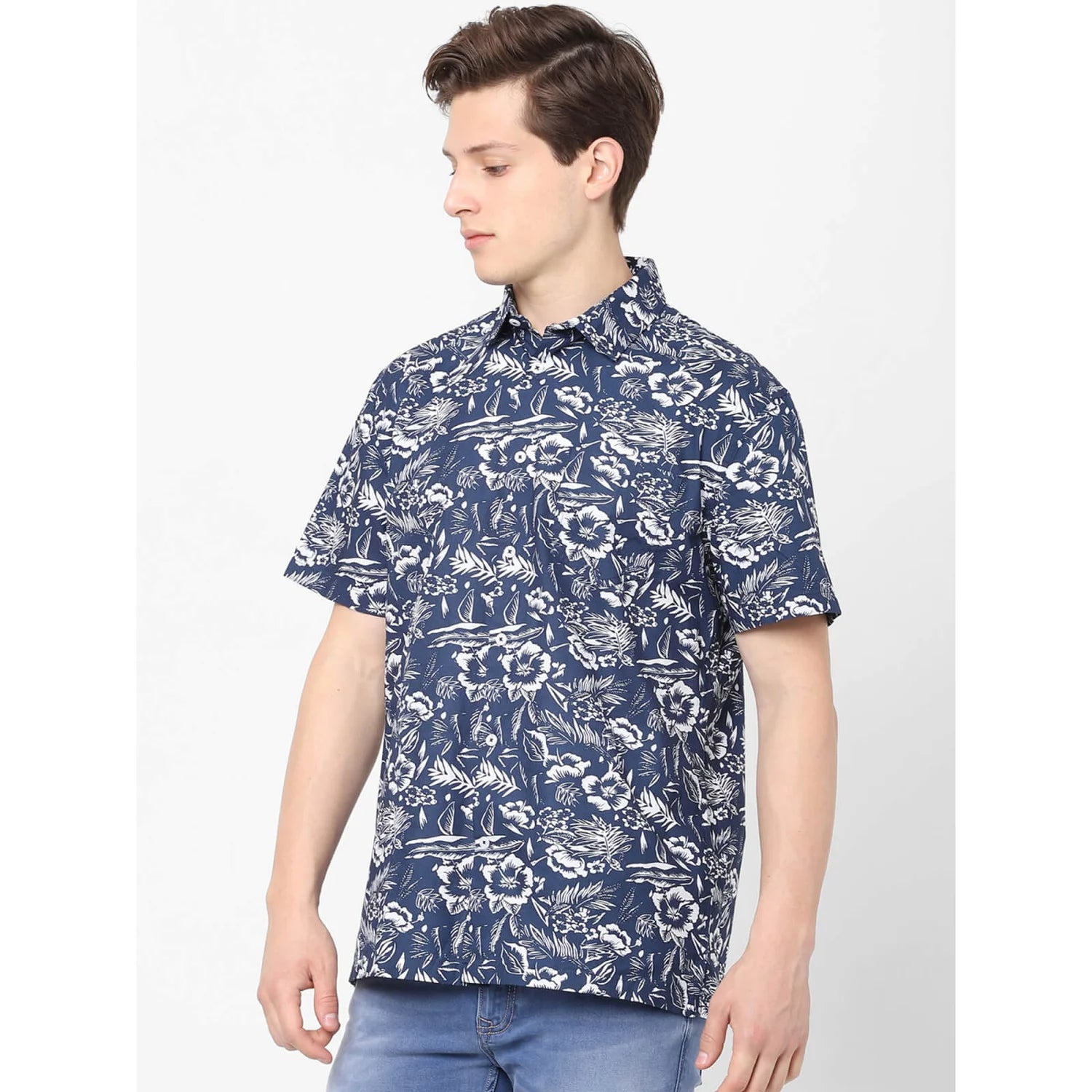 Celio* Floral Regular Fit Cotton Blue Shirt