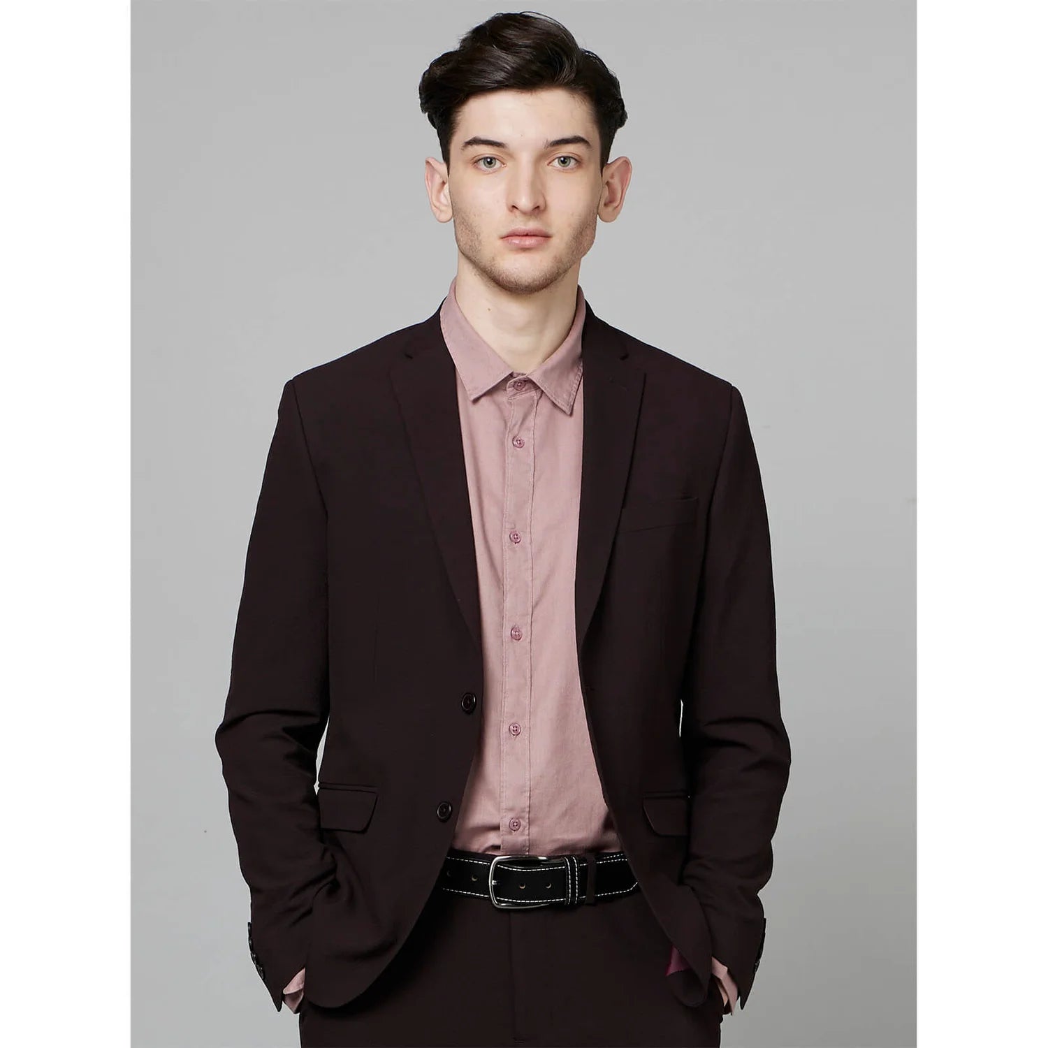 Celio* Solid Slim Fit Workwear Burgundy Blazer