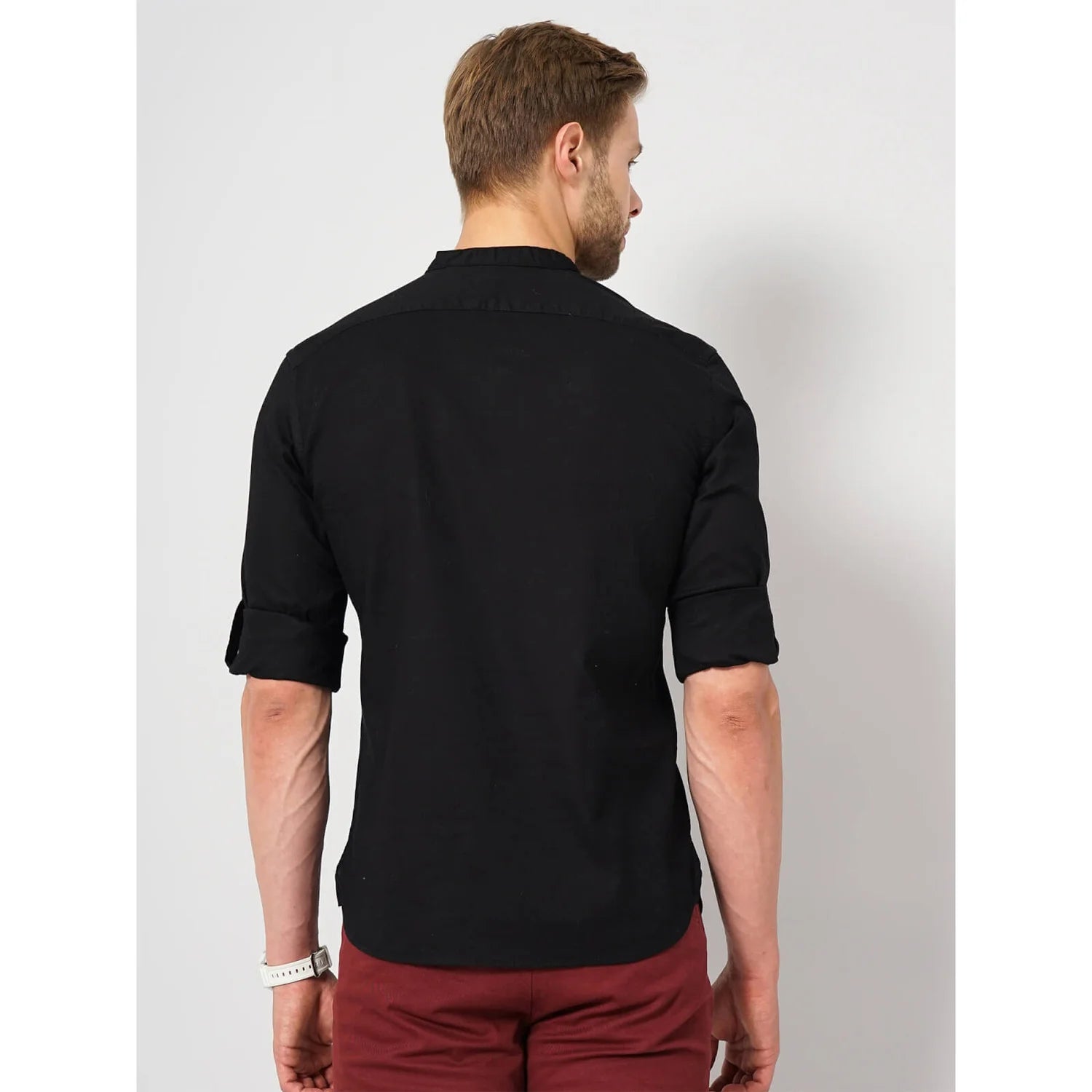 Celio* Solid Regular Fit Linen Burgundy Shirt