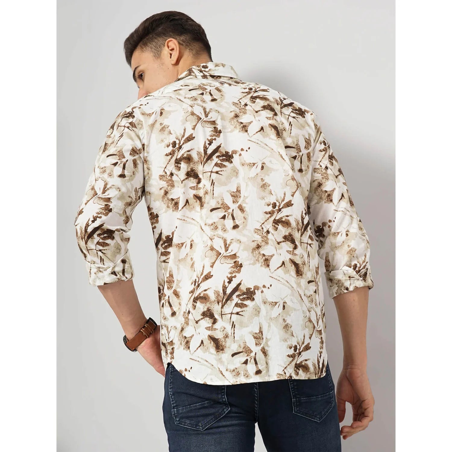 Celio* Floral Regular Fit Cotton Brown Shirt
