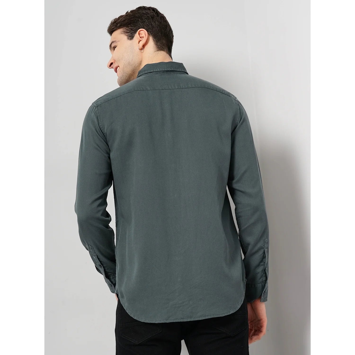 Celio* Solid Slim Fit Cotton-Blend Green Shirt