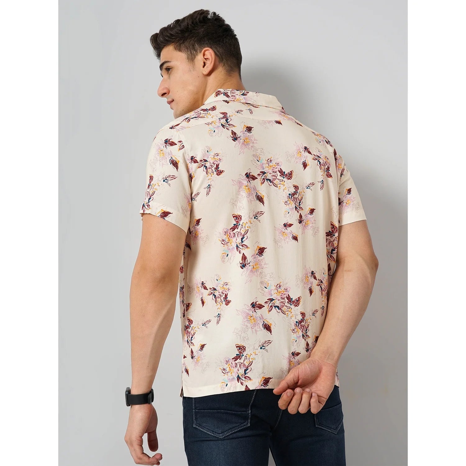 Celio* Floral Regular Fit Viscose Beige Shirt