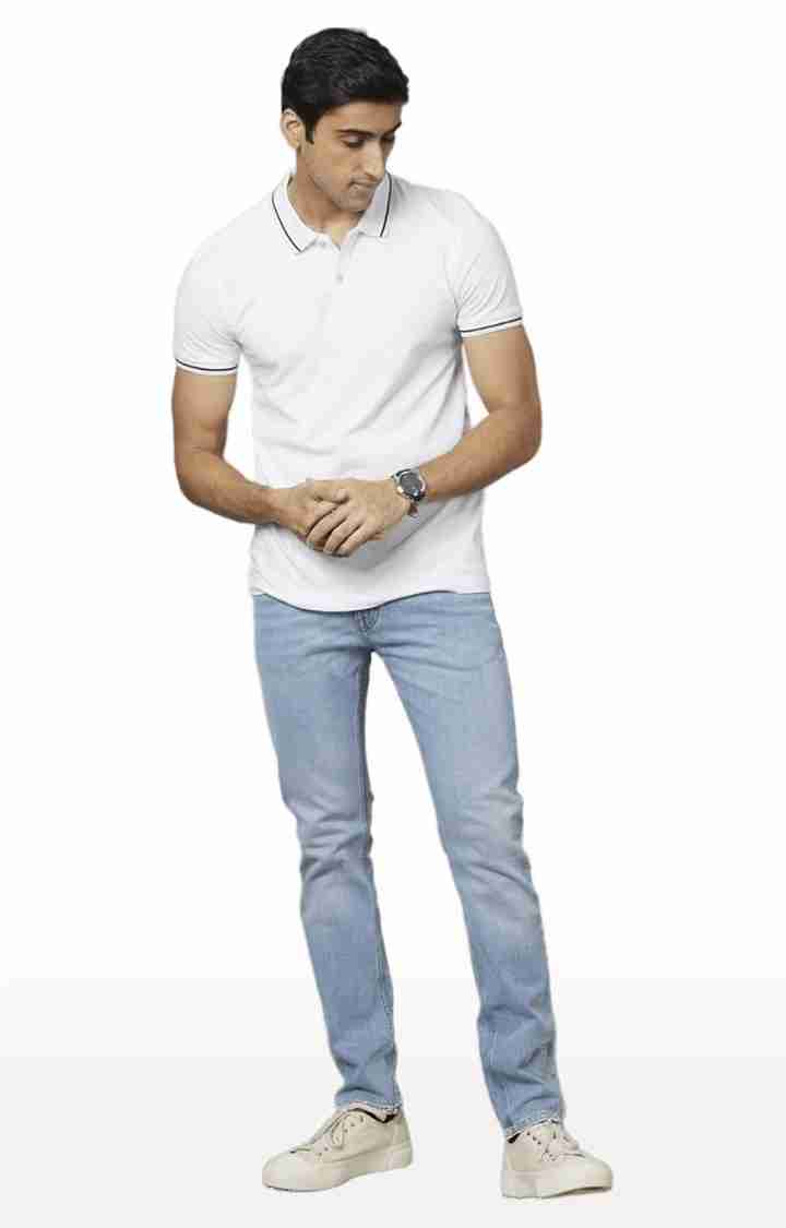Celio* Blue_Lock Regular Fit Cotton White T-Shirt