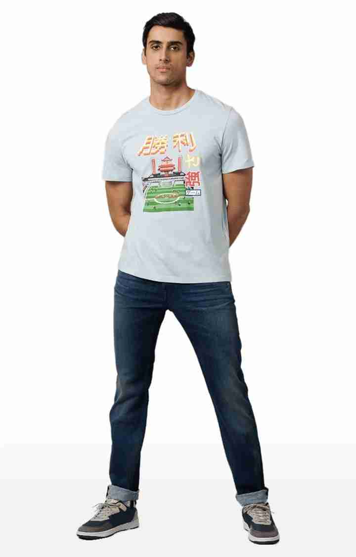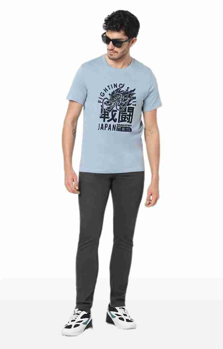 Celio* Blue_Lock Regular Fit Cotton Blue T-Shirt