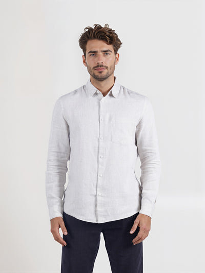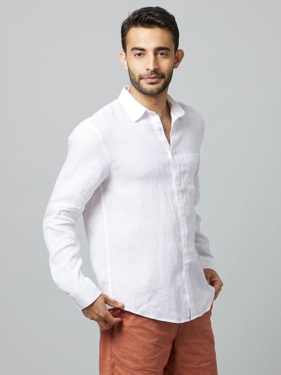 Celio* Solid Regular Fit Linen White Shirt