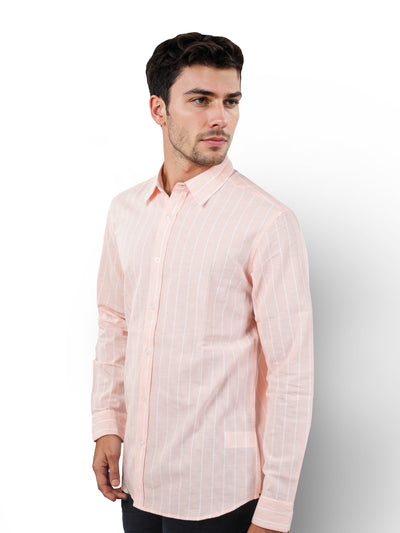 Celio* Striped Regular Fit Linen Pink Shirt