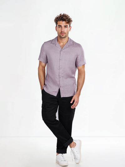 Celio* Solid Regular Fit Linen Purple Shirt
