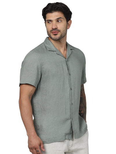 Celio* Solid Regular Fit Linen Green Shirt