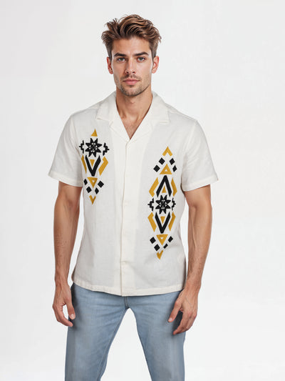 Celio* Embroidered Regular Fit Linen White Shirt