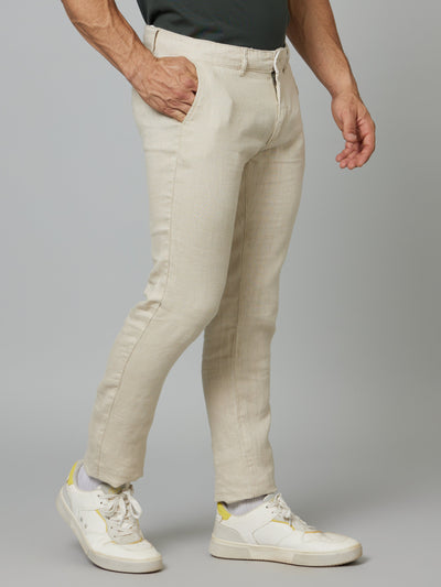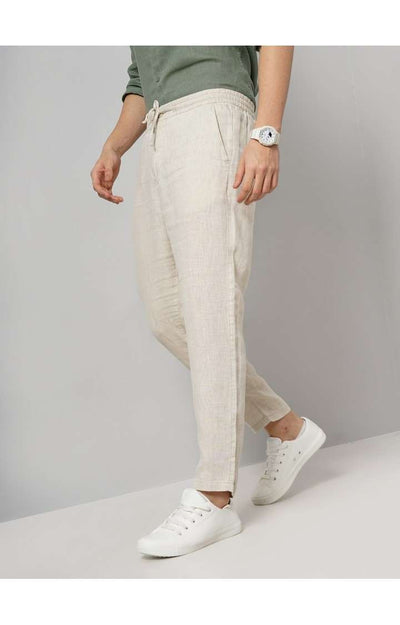 Celio* Men Beige Solid Slim Fit Linen Trousers