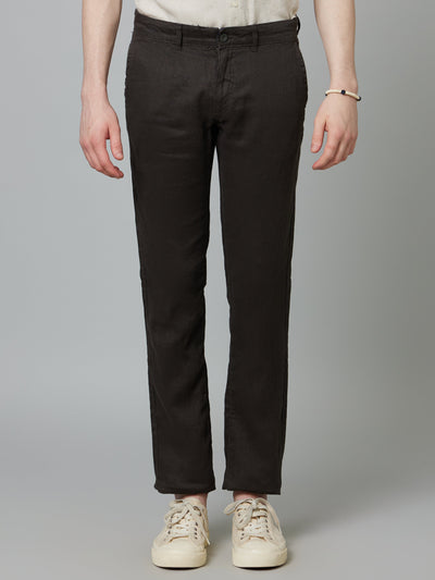 Celio* Men Brown Solid Regular Fit Linen Trousers