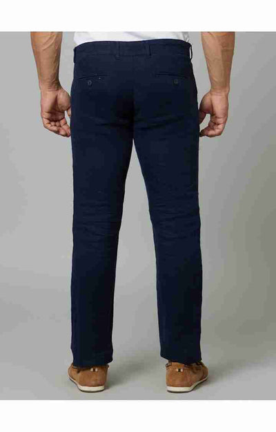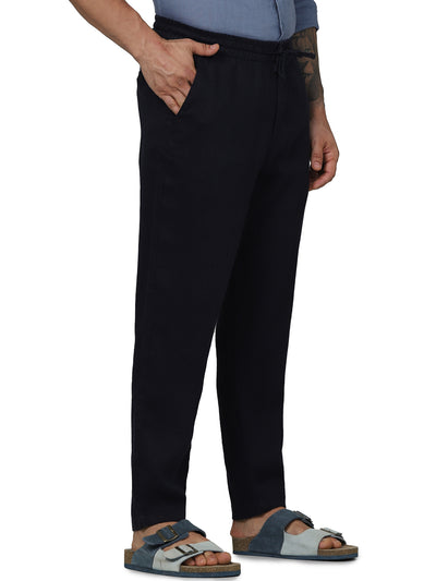Celio Men Navy Blue Solid Regular Fit Linen Trousers