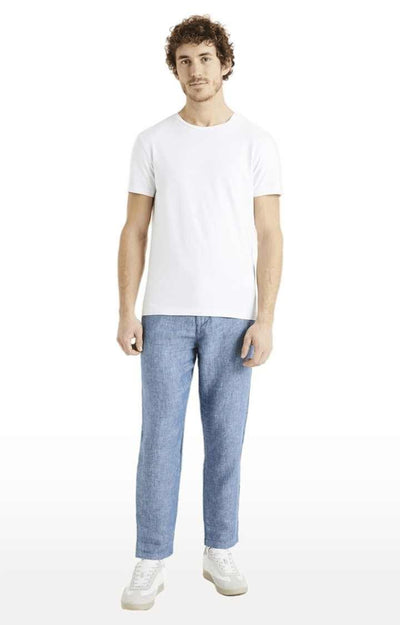 Celio* Men Blue Solid Straight Fit Linen Trouser