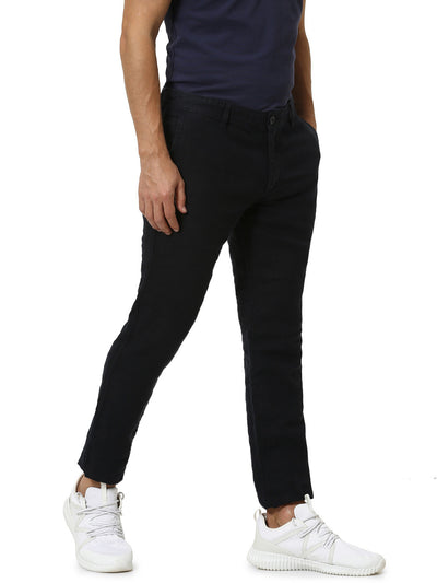 Celio* Men Black Solid Slim Fit Linen Trousers