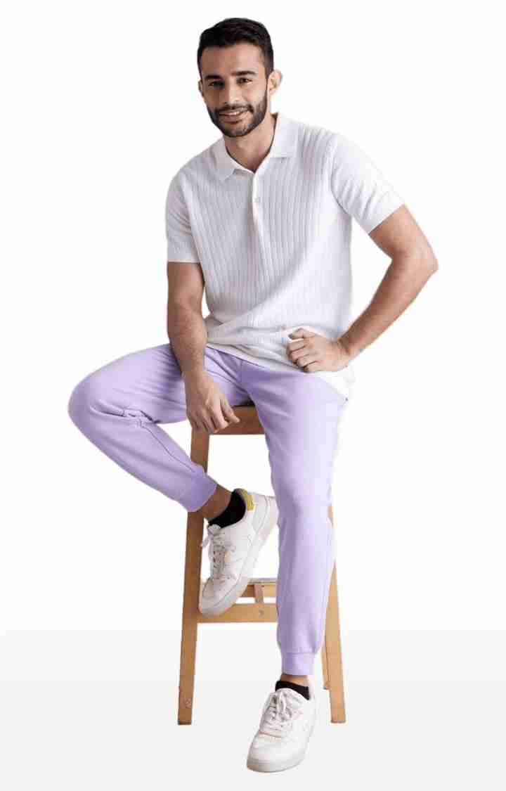 Celio* Men White Solid Jogger Fit Cotton Trousers