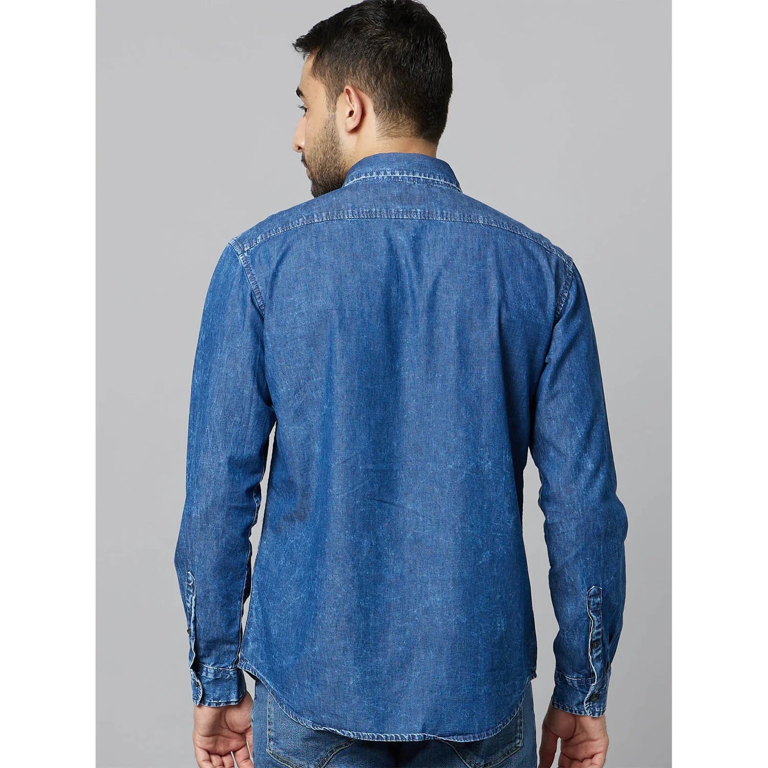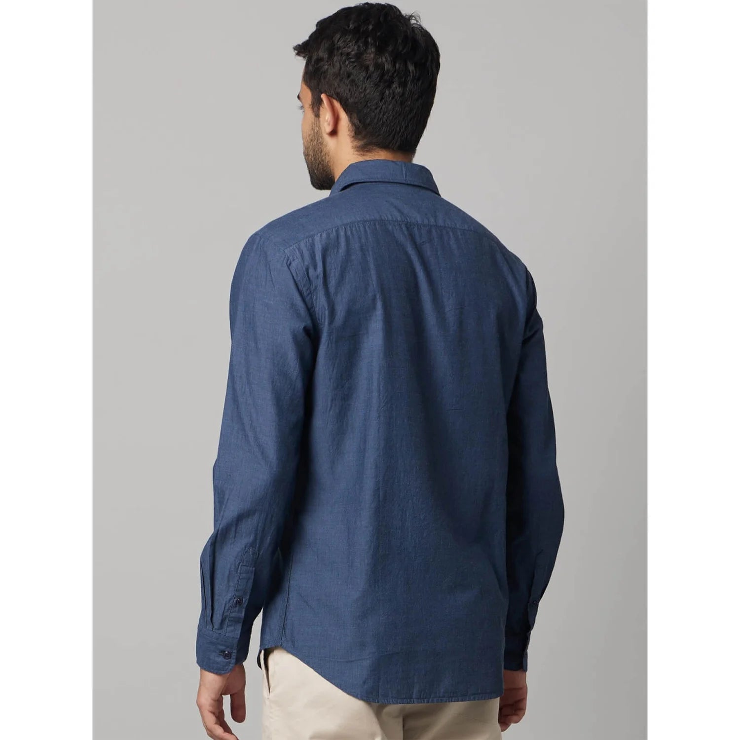 Celio* Solid Regular Fit Cotton-Blend Navy Blue Shirts