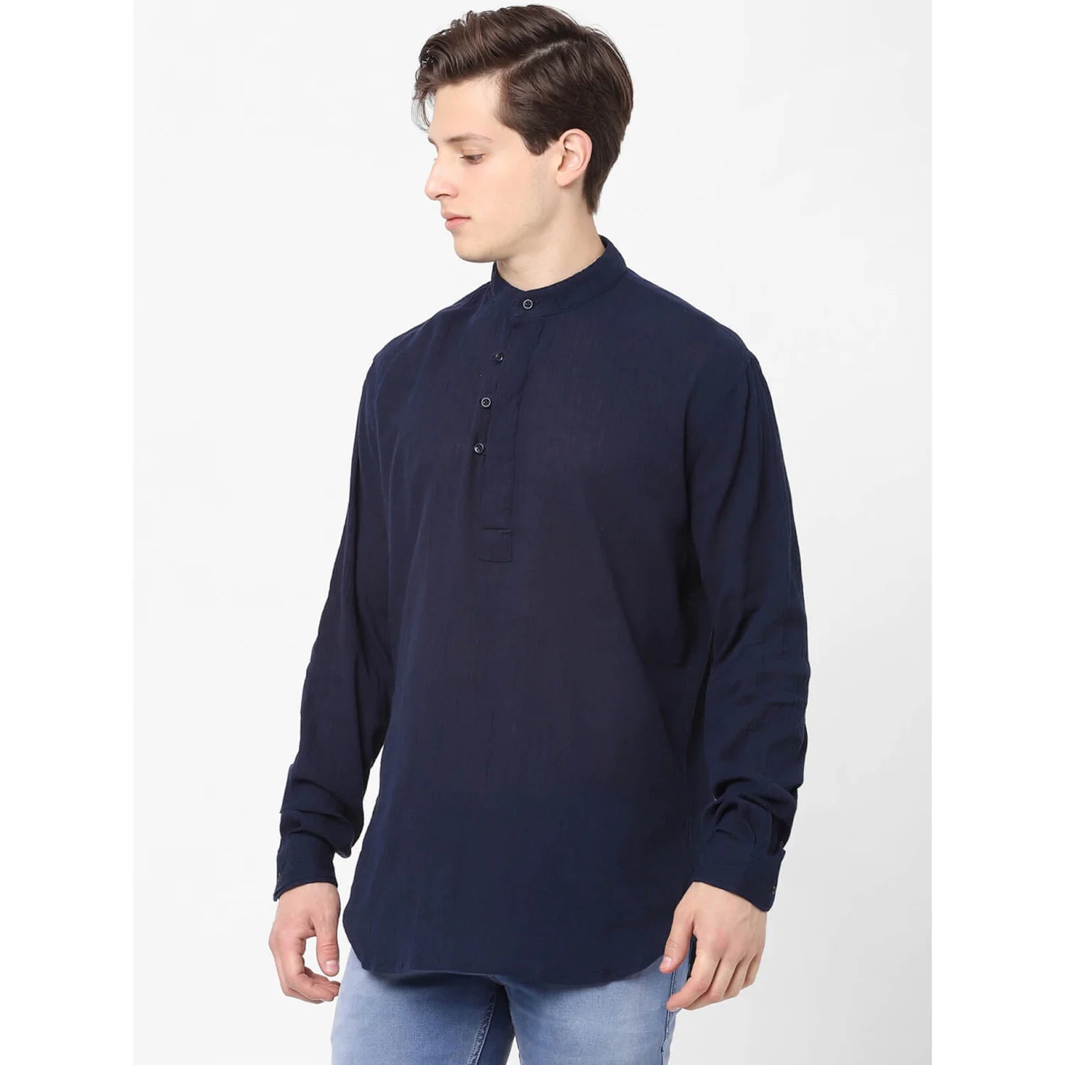 Celio* Solid Oversized Cotton Navy Blue Shirt