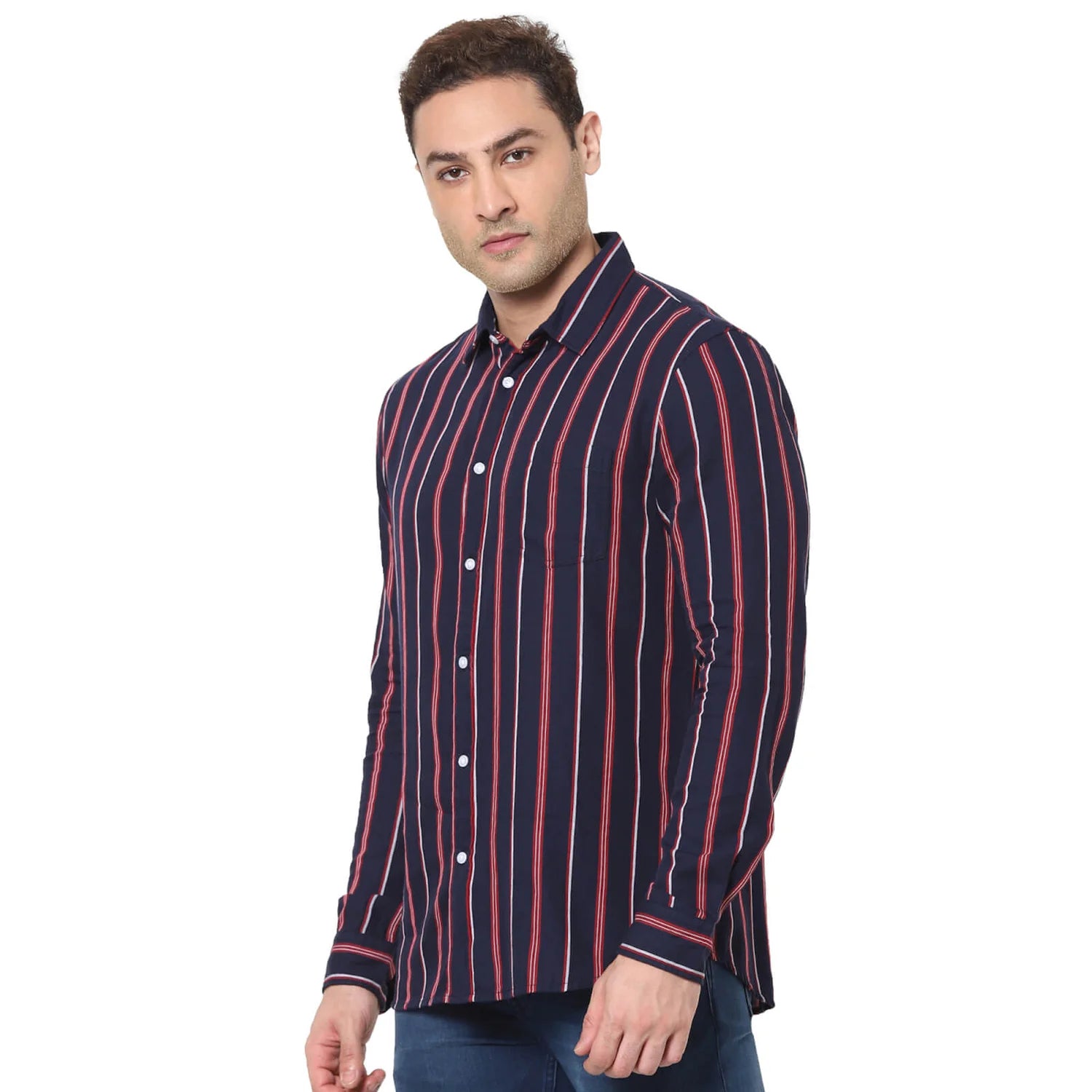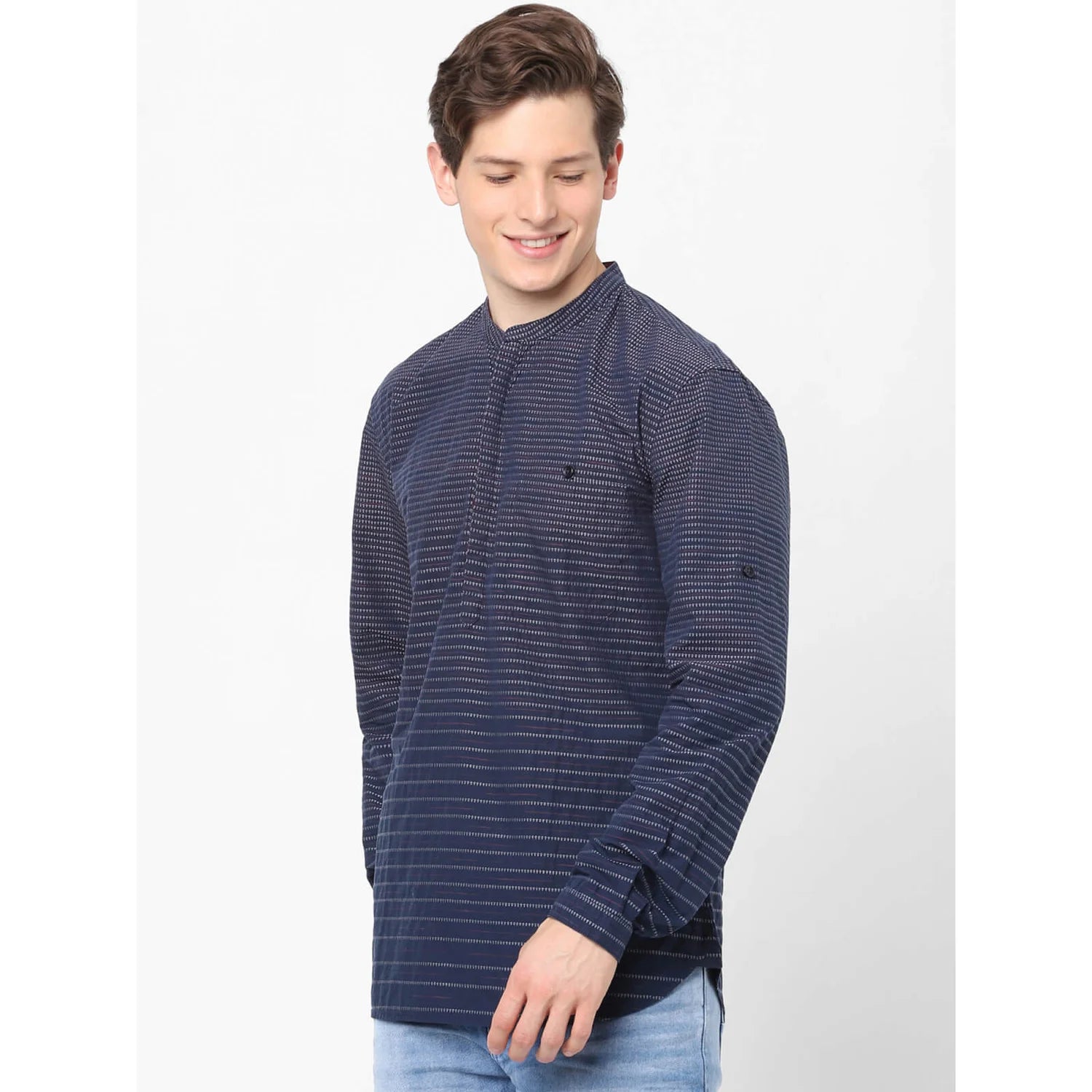 Celio* Striped Regular Fit Cotton Navy Blue Shirt