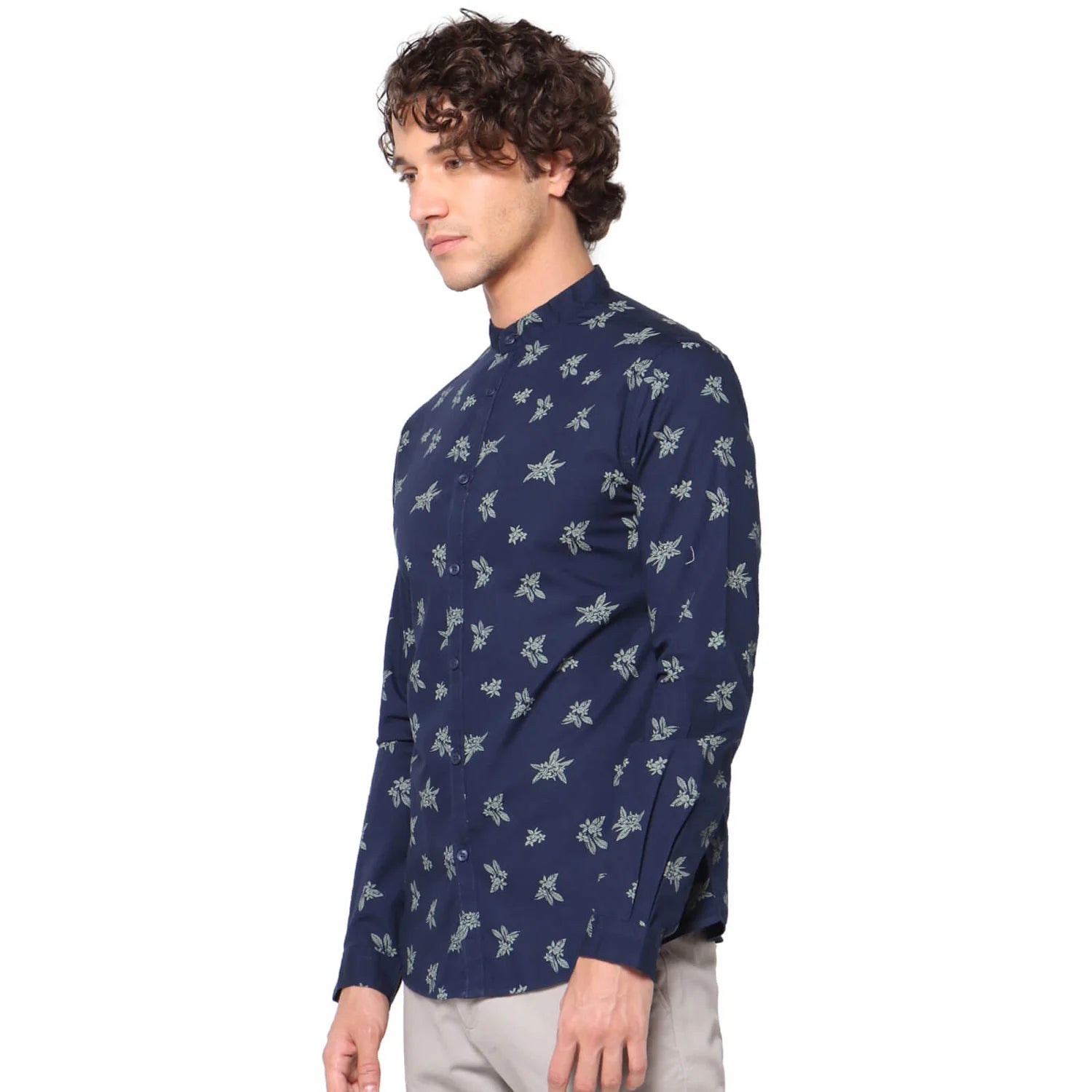Celio* Printed Regular Fit Cotton Navy Blue Shirt