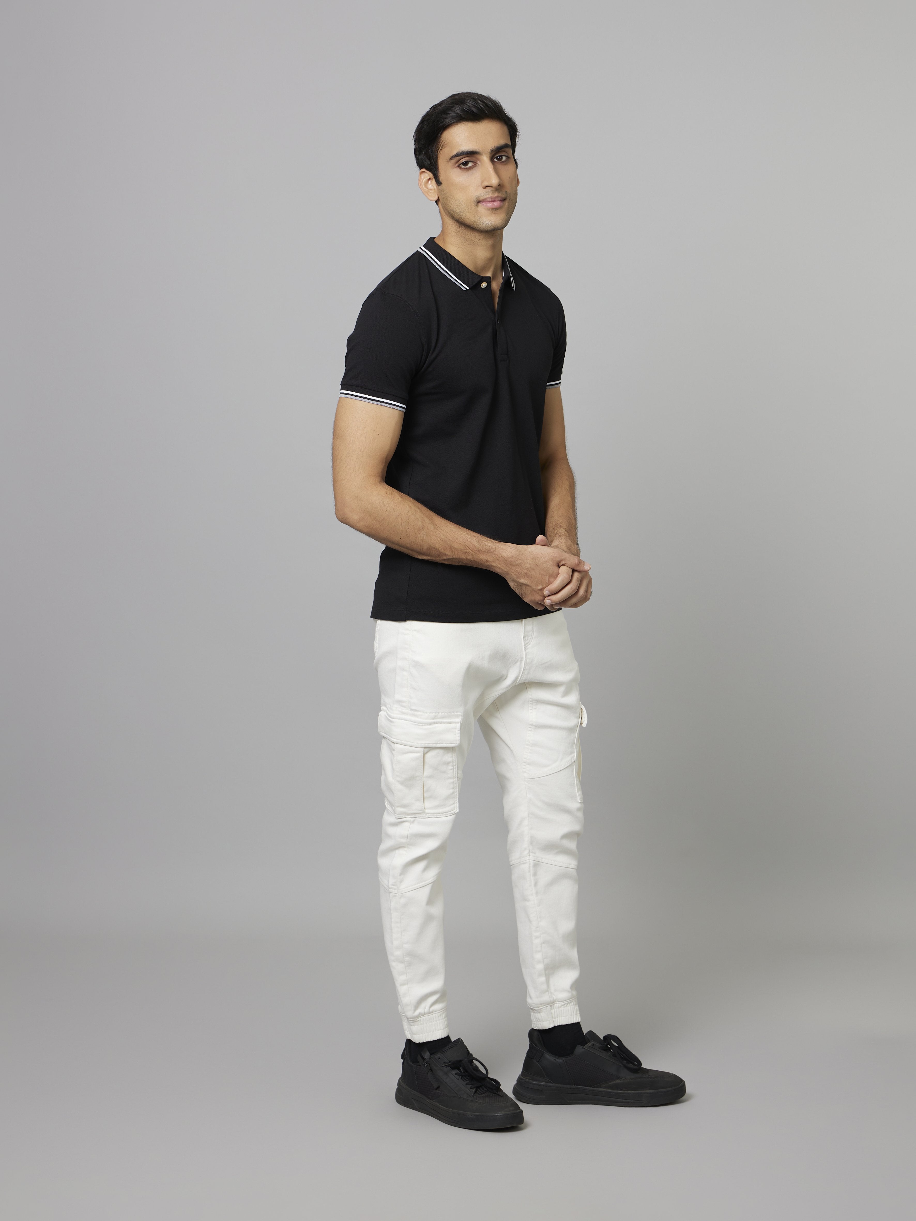 Celio Men White Solid Slim Fit Poly-Cotton Trousers