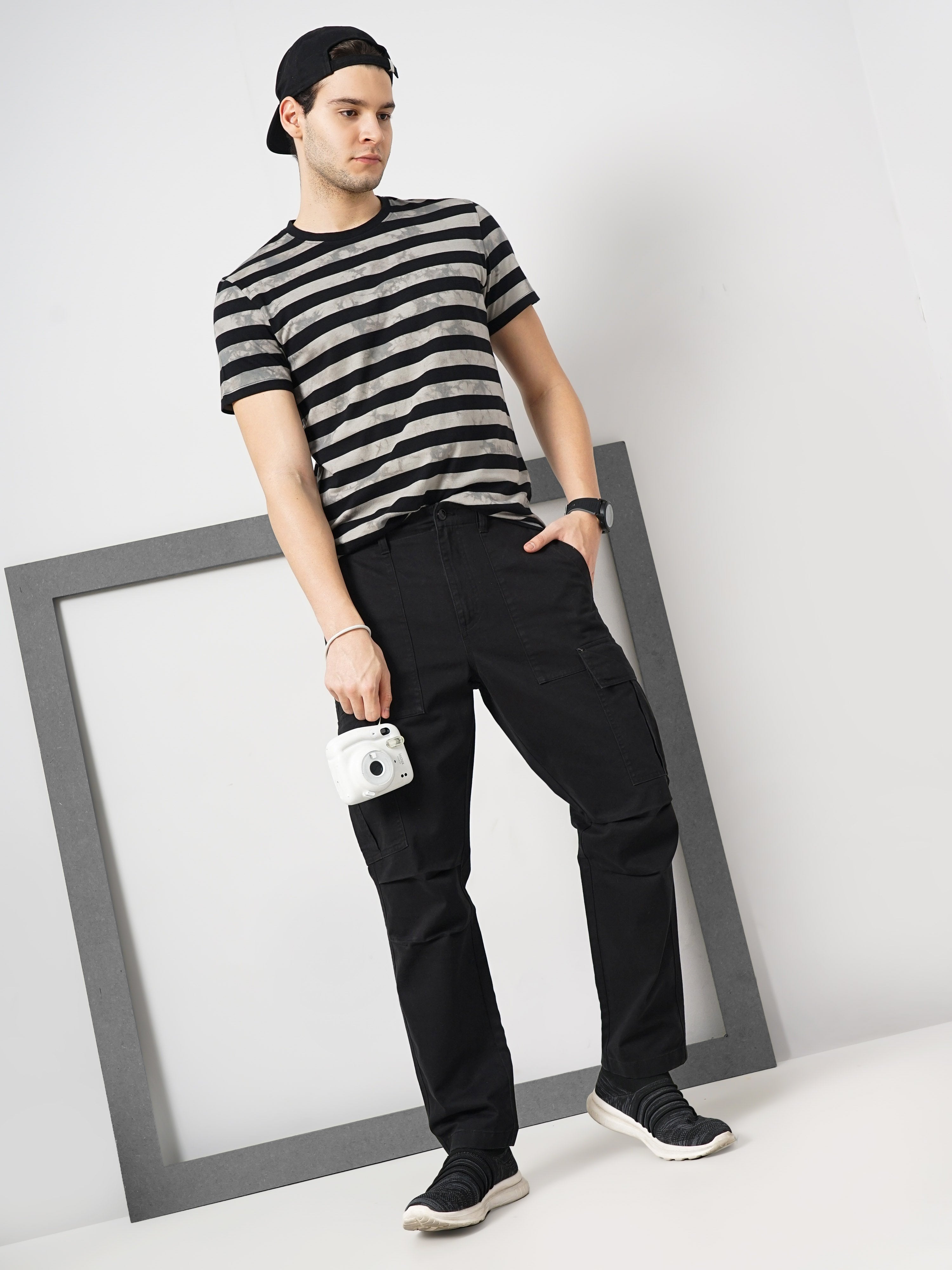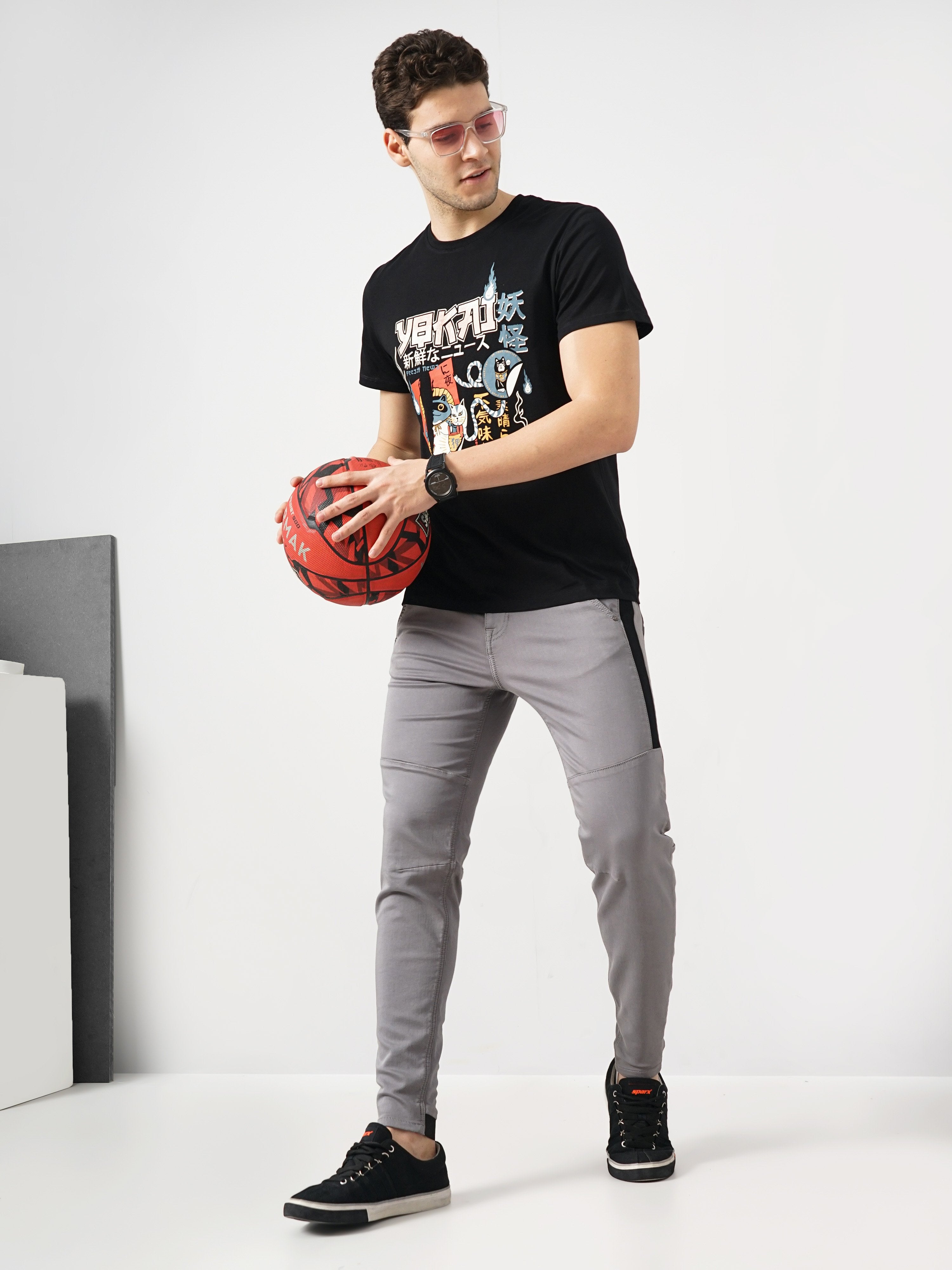 Celio Men Black Printed Regular Fit Cotton T-shirts