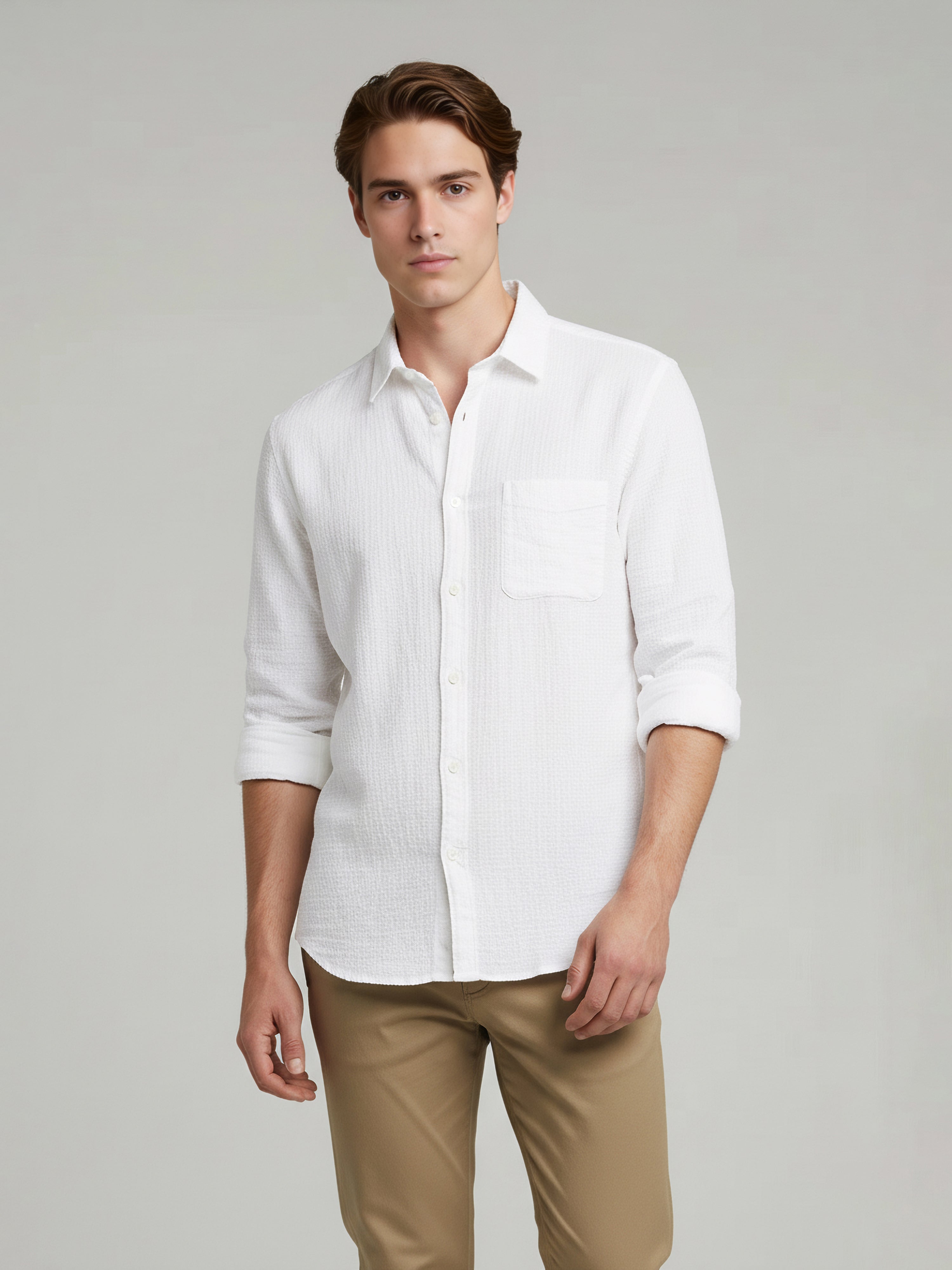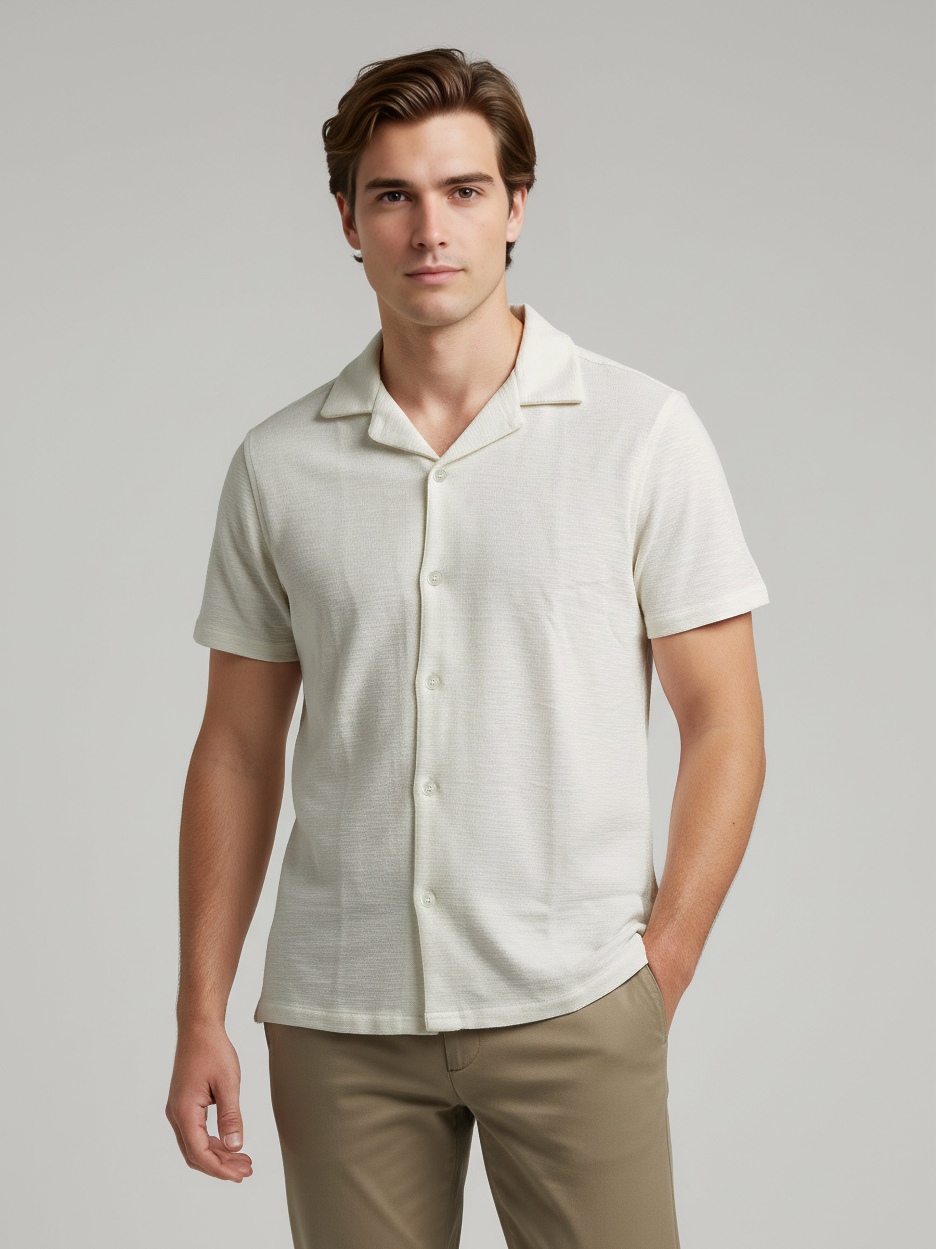 Celio Men White Solid Regular Fit Cotton-Poly-Blend Shirts