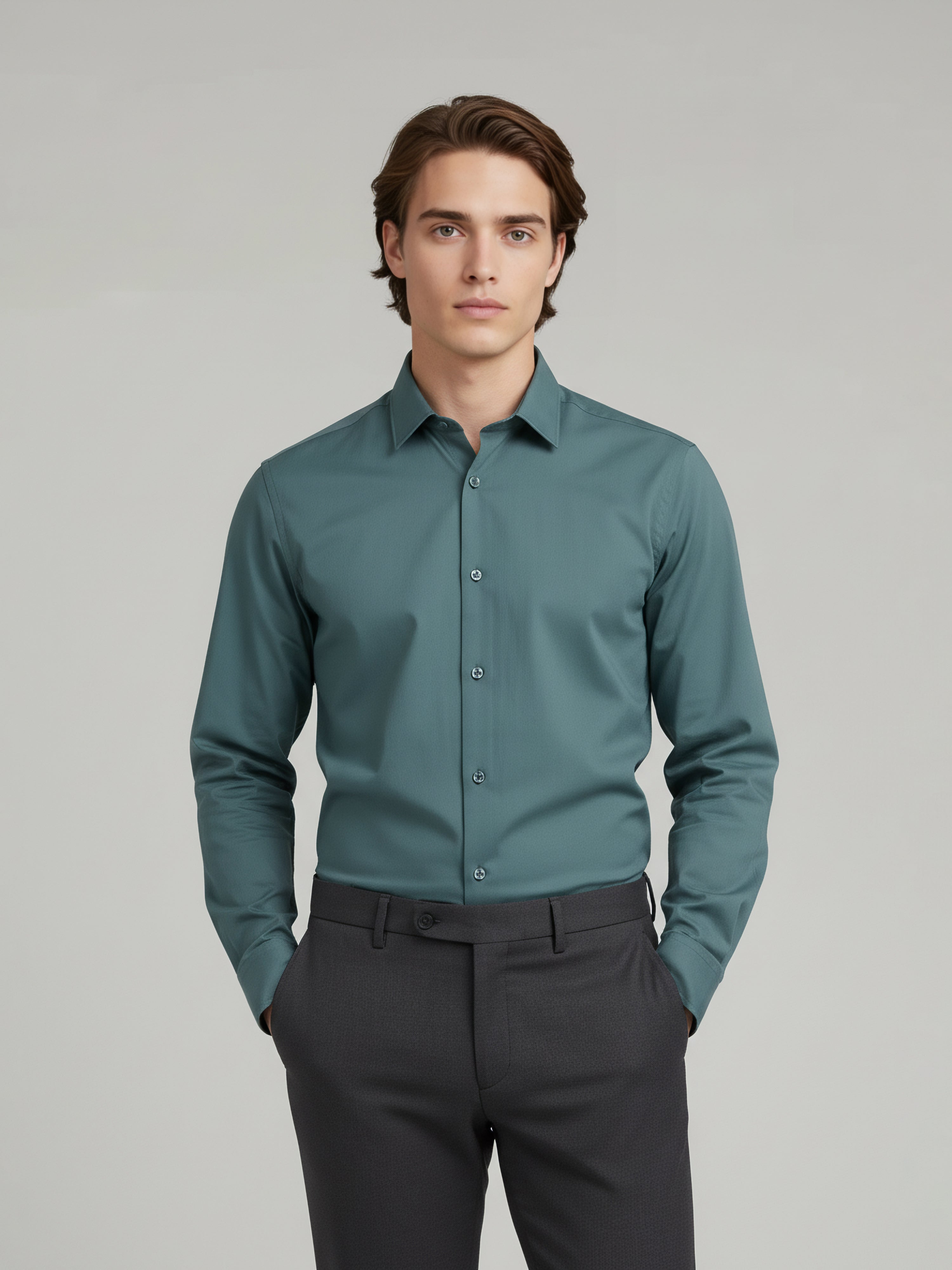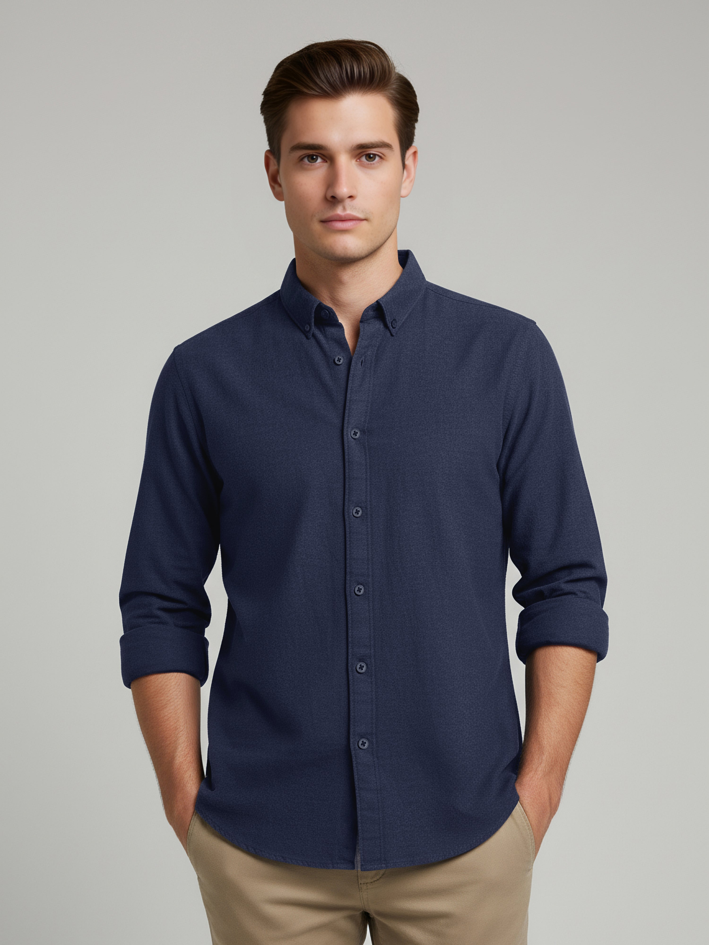 Celio Men Blue Solid Regular Fit Cotton-Poly-Blend Shirts