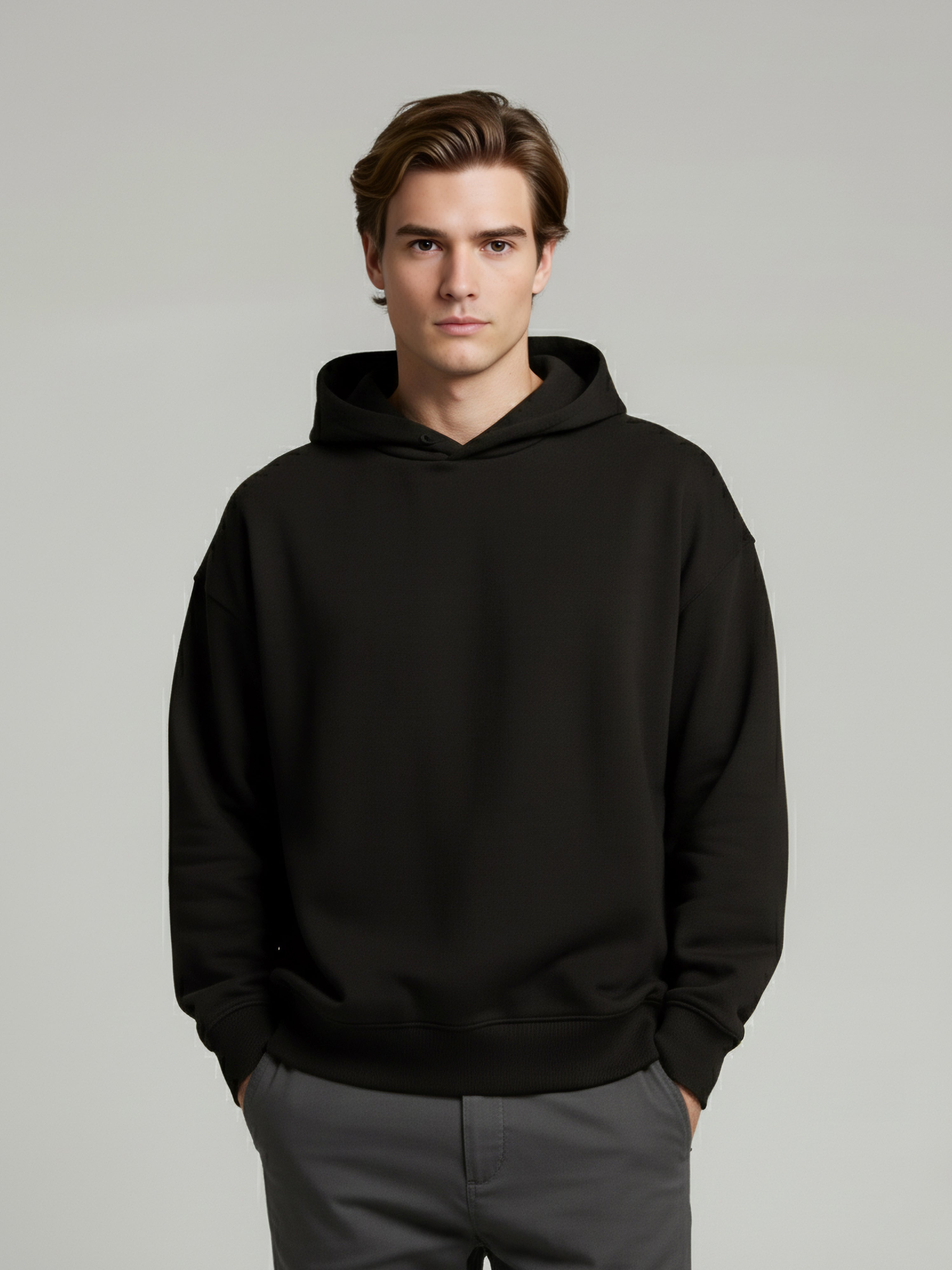 Celio Men Black Solid Oversize Cotton Sweatshirts