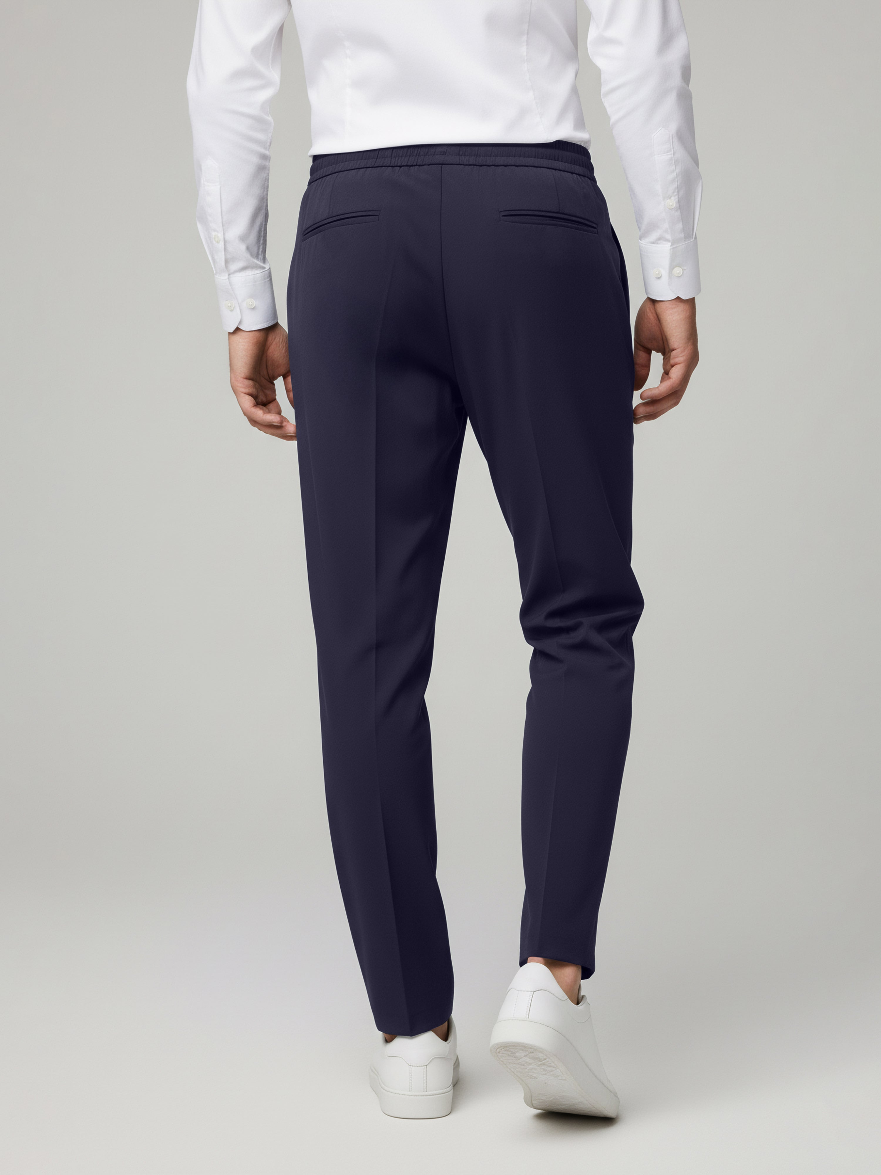 Celio Men Navy Blue Solid Straight Fit Poly-Blend Trousers