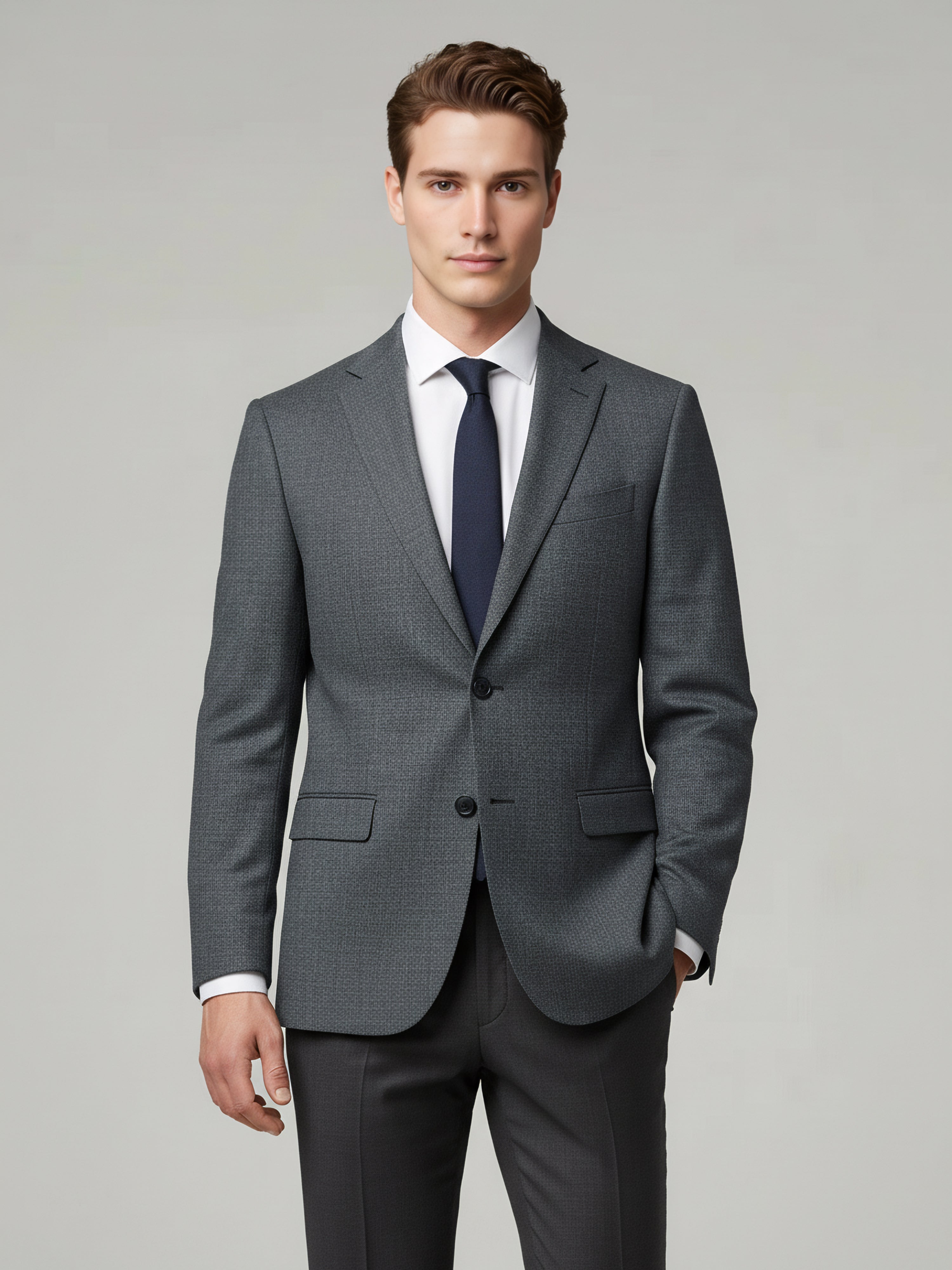 Celio Men Grey Solid Slim Fit Wool Blazer