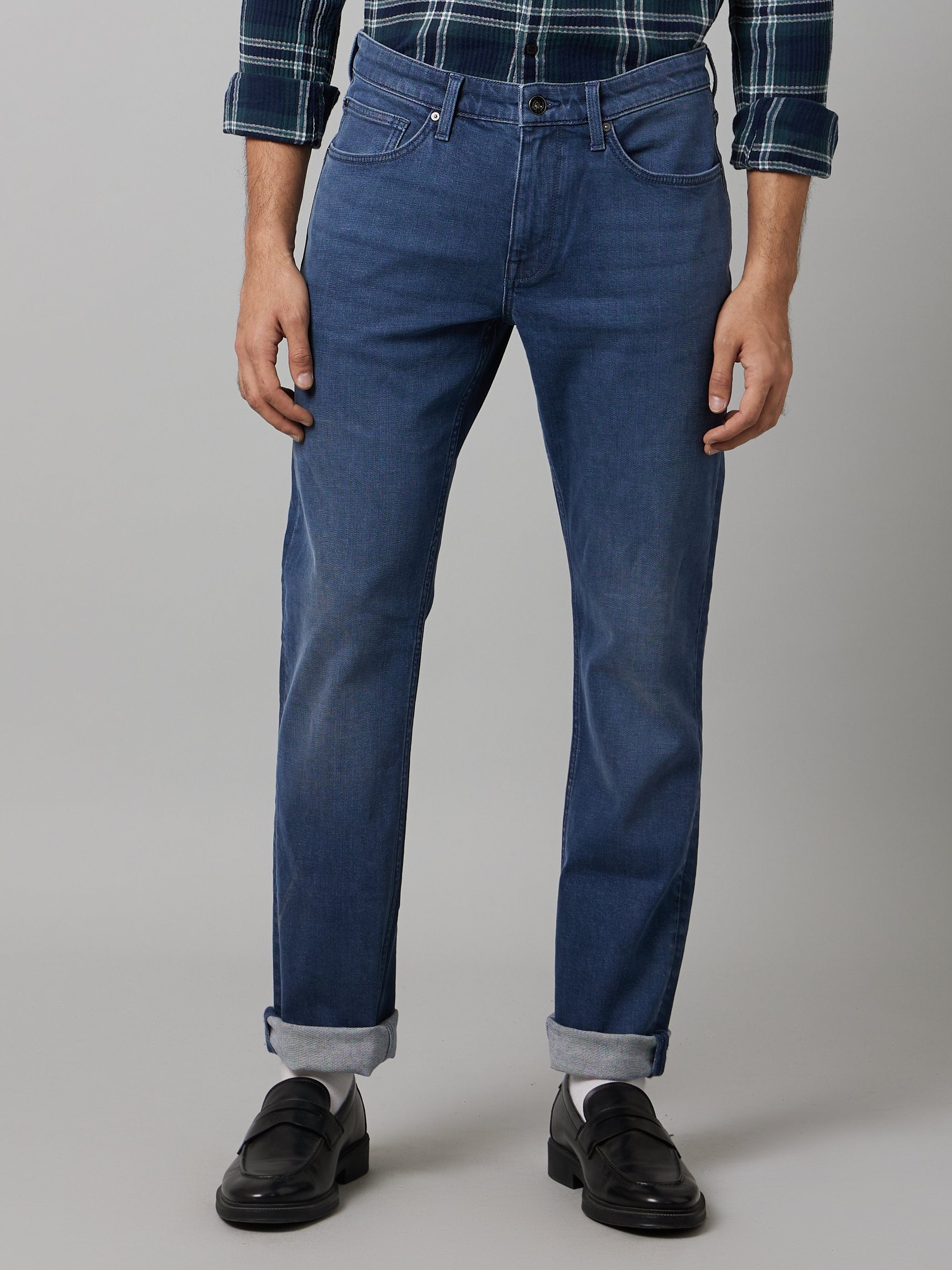 Celio Men Blue Solid Straight Fit Cotton-Blend Jeans