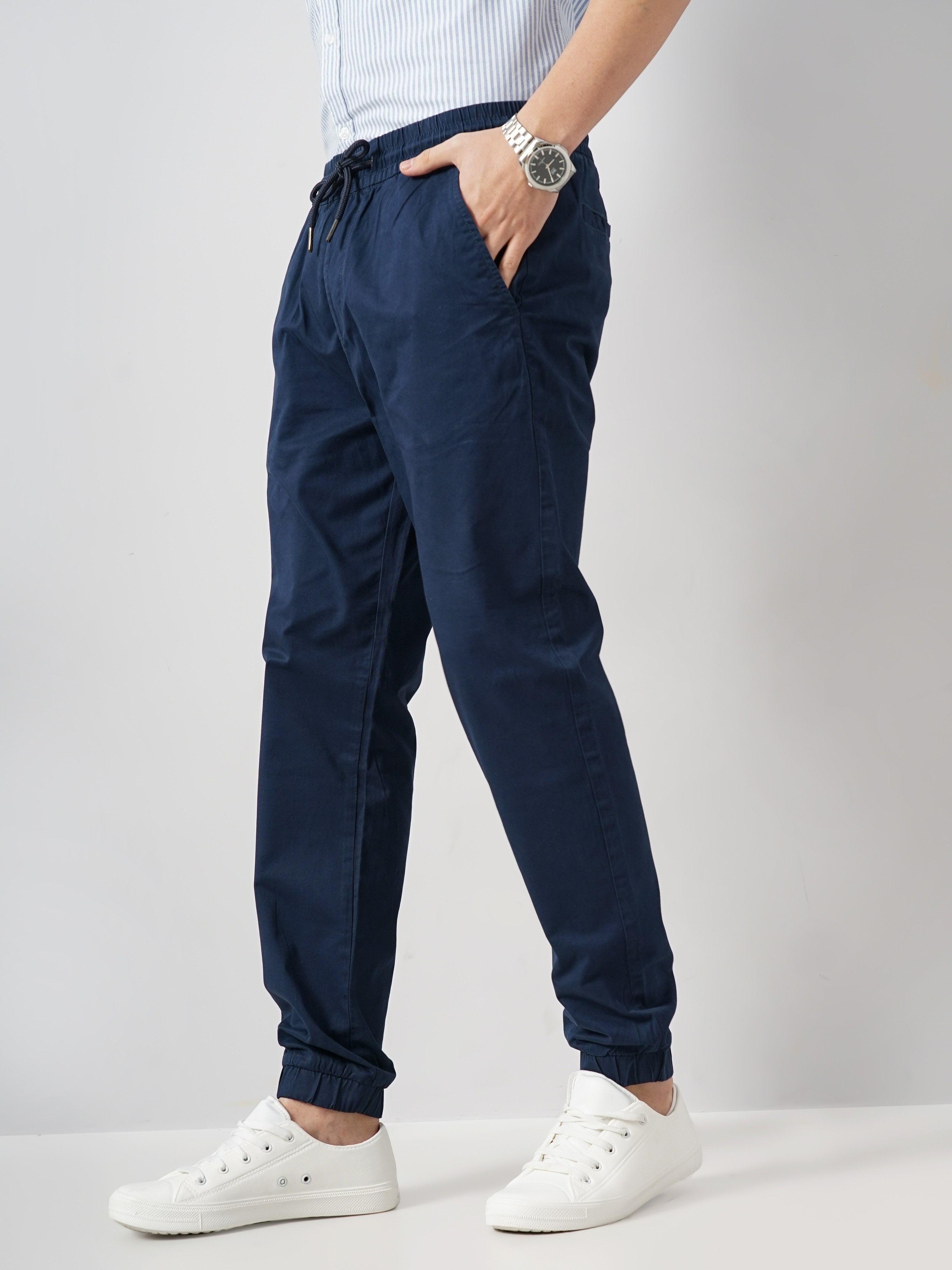 Celio Men Blue Solid Jogger Fit Cotton Trousers