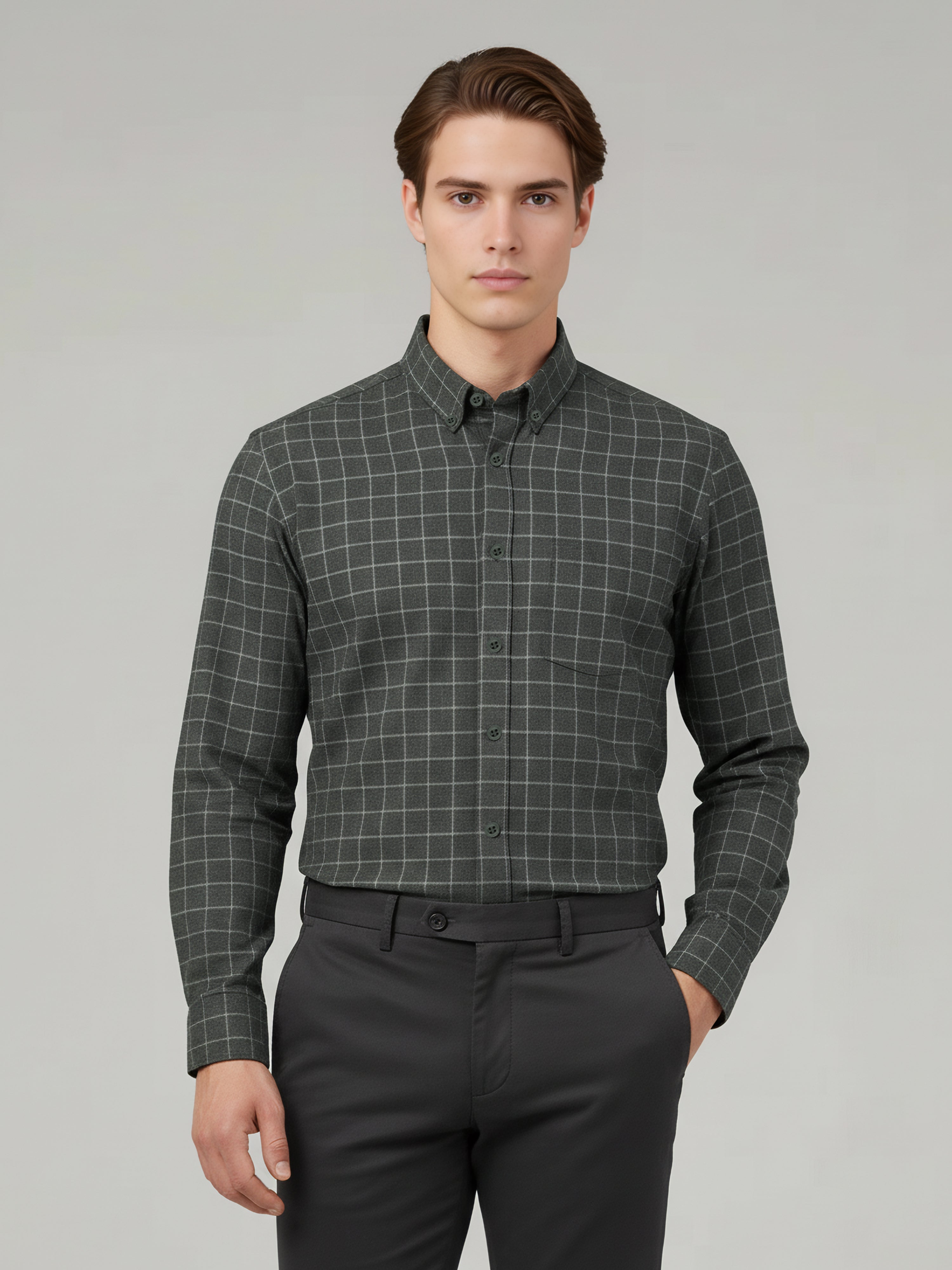Celio Men Grey Checked Regular Fit Cotton Shirts