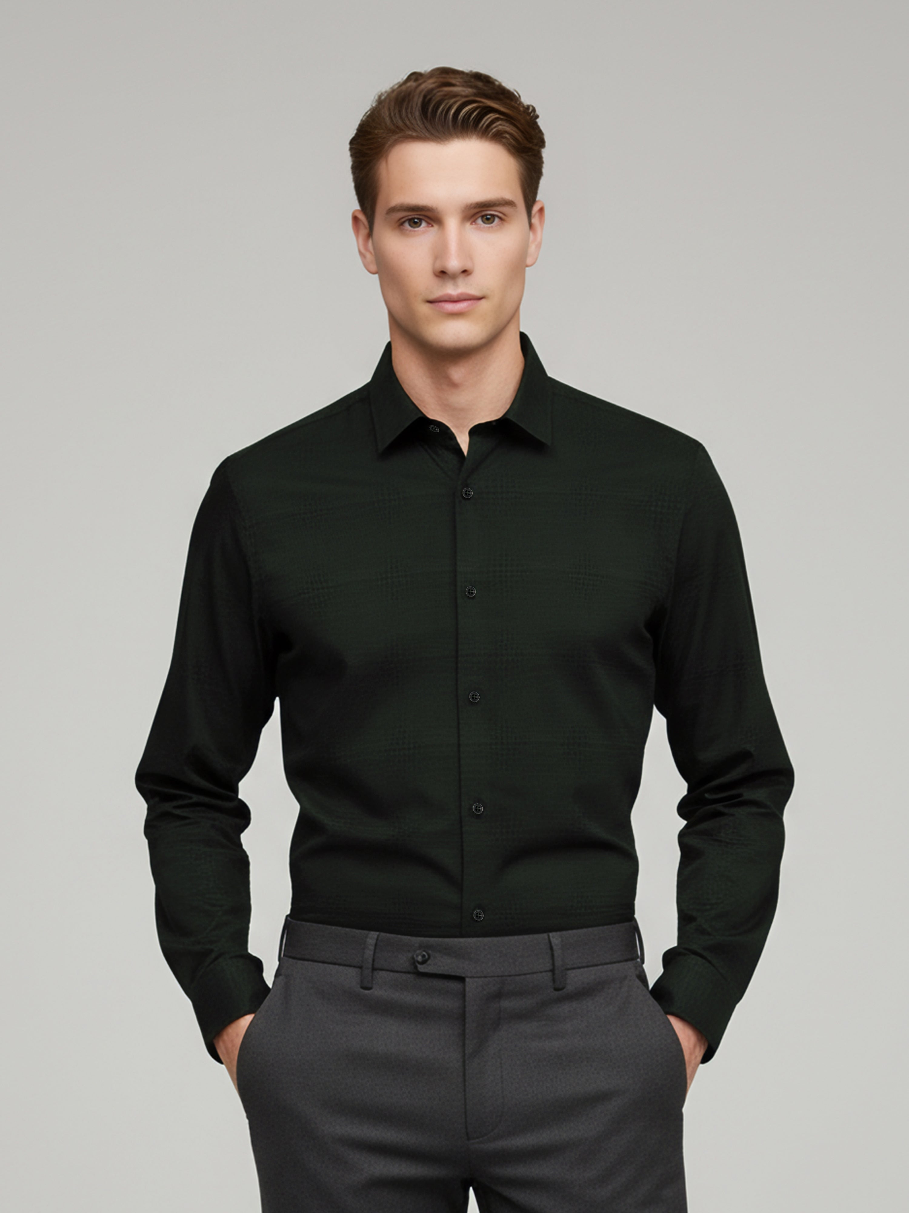 Celio Men Olive Solid Regular Fit Cotton Shirts