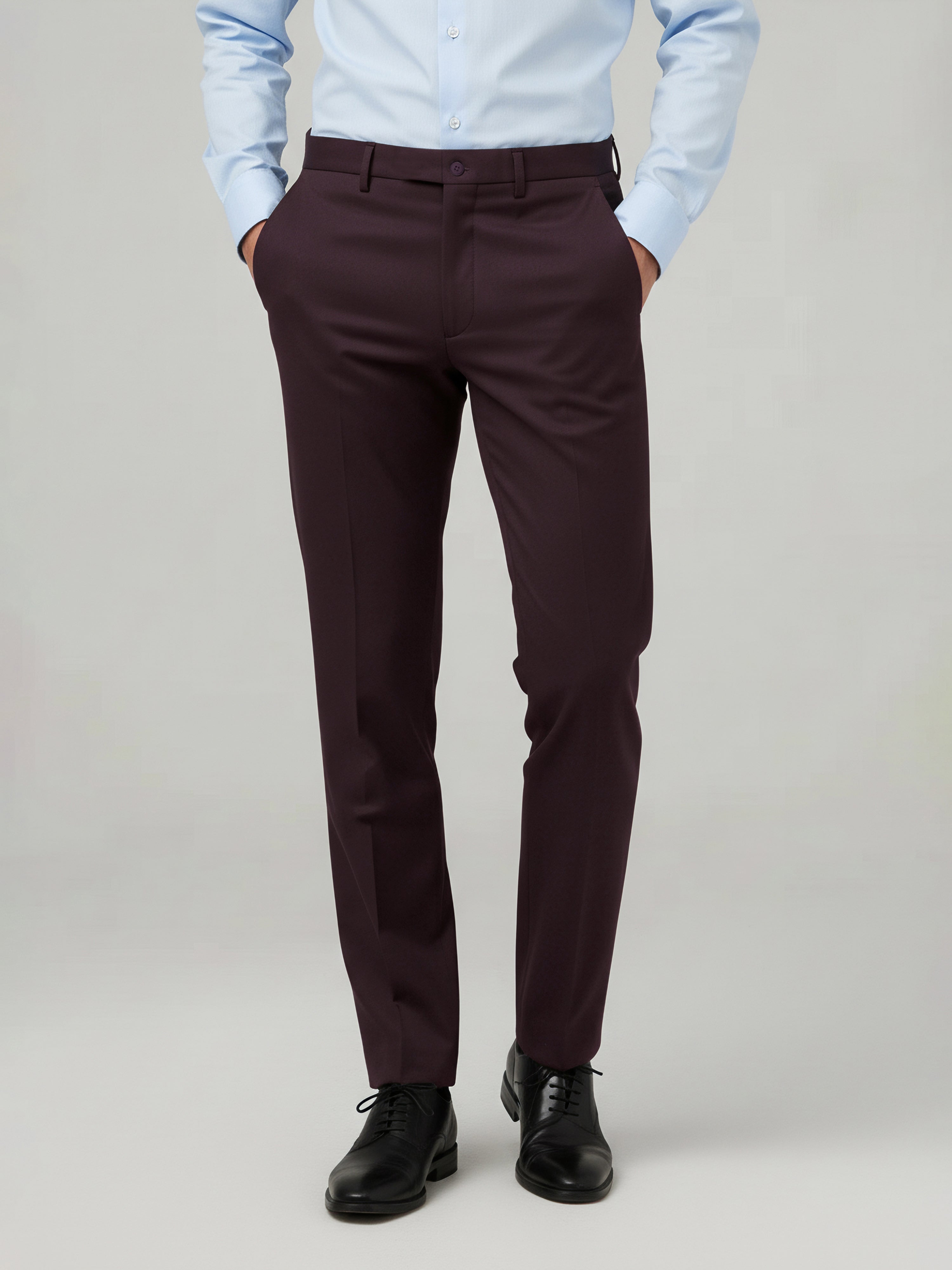 Celio Men Burgundy Solid Jogger Fit Cotton Trousers
