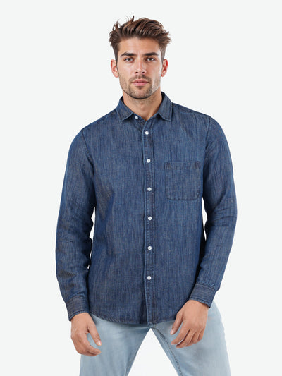 Celio* Solid Regular Fit Cotton Blue Shirt