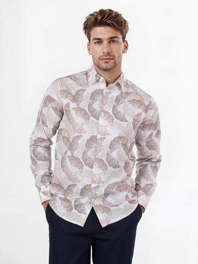 Celio* Printed Regular Fit Cotton Brown Shirt