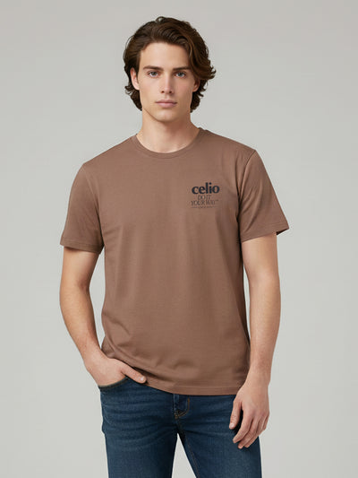 Celio* Men Brown Printed Regular Fit Cotton T-Shirts