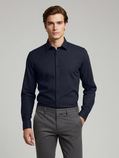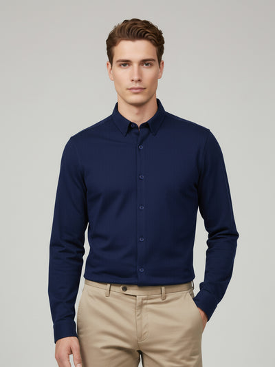 Celio* Solid Regular Fit Cotton Navy Blue Shirt