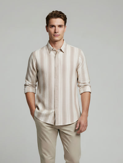 Celio* Men Beige Striped Regular Fit Cotton Shirts