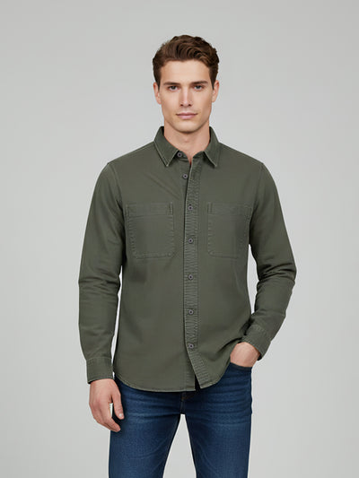 Celio* Men Olive Solid Overshirt Cotton Shirts