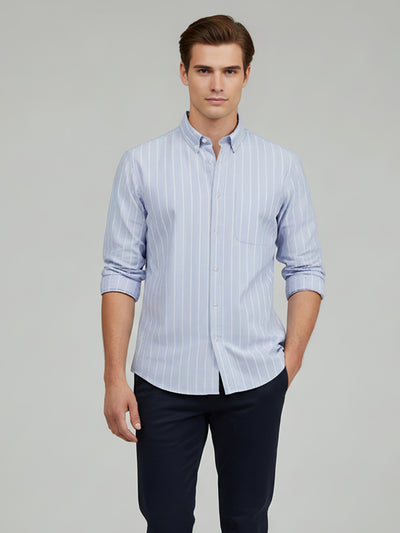Celio* Men Blue Striped Oversize Cotton Shirts