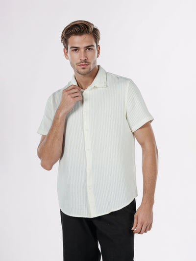 Celio* Men White Striped Regular Fit Cotton Shirts