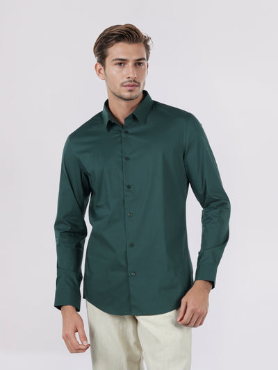 Celio* Men Olive Solid Regular Fit Cotton Shirts