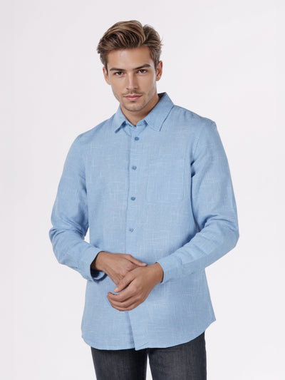 Celio* Men Blue Solid Regular Fit Linen Shirts
