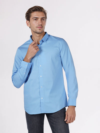 Celio* Men Blue Solid Regular Fit Cotton Shirts
