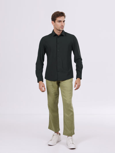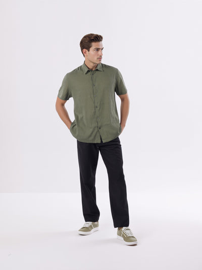 Celio* Men Olive Solid Regular Fit Linen Shirts