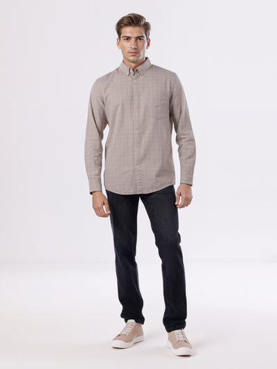Celio* Men Beige Checked Regular Fit Cotton Shirts