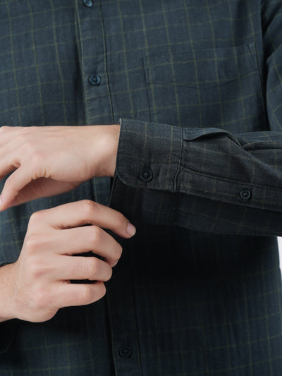 Celio* Men Green Checked Regular Fit Cotton Shirts