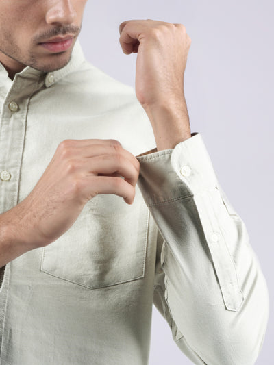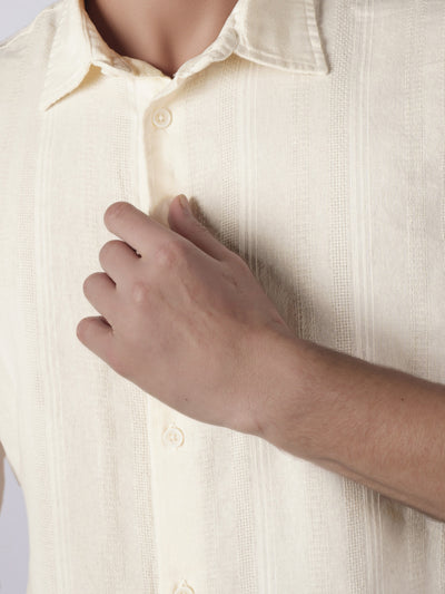 Celio* Men Cream Solid Regular Fit Cotton Shirts